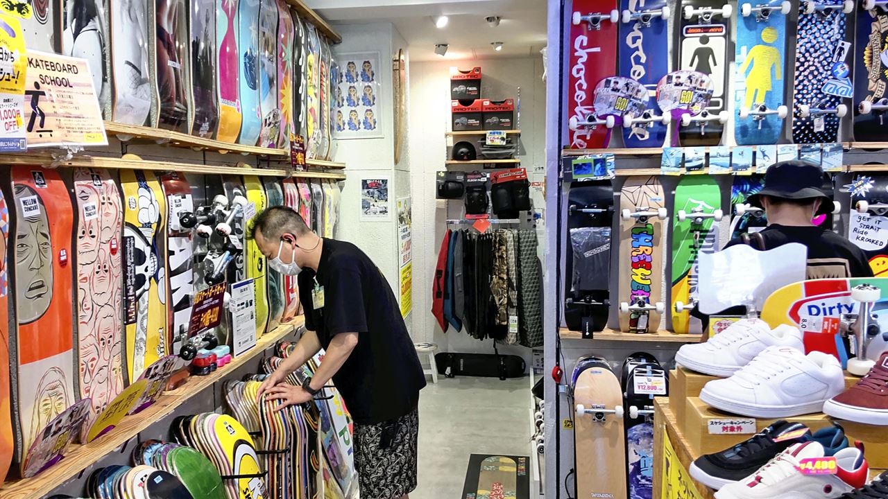 Murasaki Sports in Shibuya Ward, Tokyo, has seen an increase in inquiries about skateboarding and what types of skateboards the company has in stock.