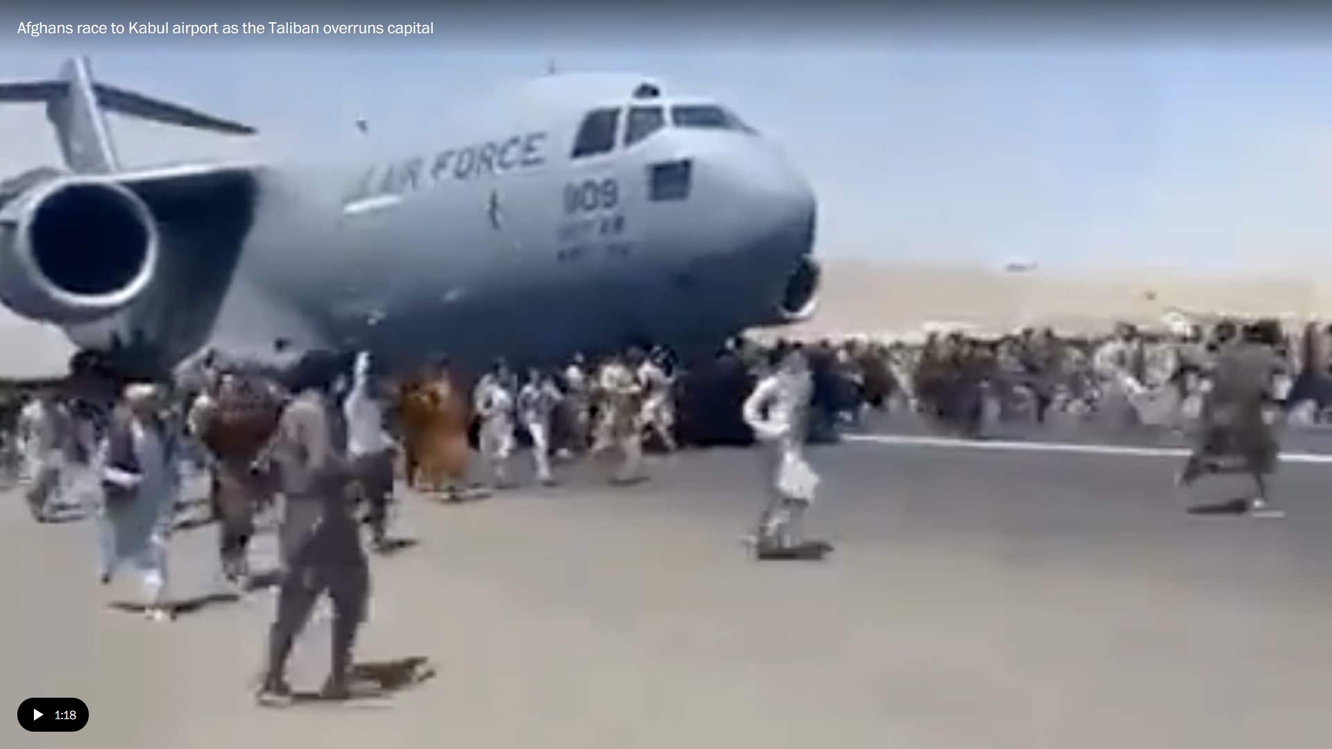 The other is an image just as searing as those from the fall of Saigon: Desperate Afghans clinging to the wheel wells of a C-17 U.S. Air Force cargo jet as it taxis for takeoff at Kabul's international airport.