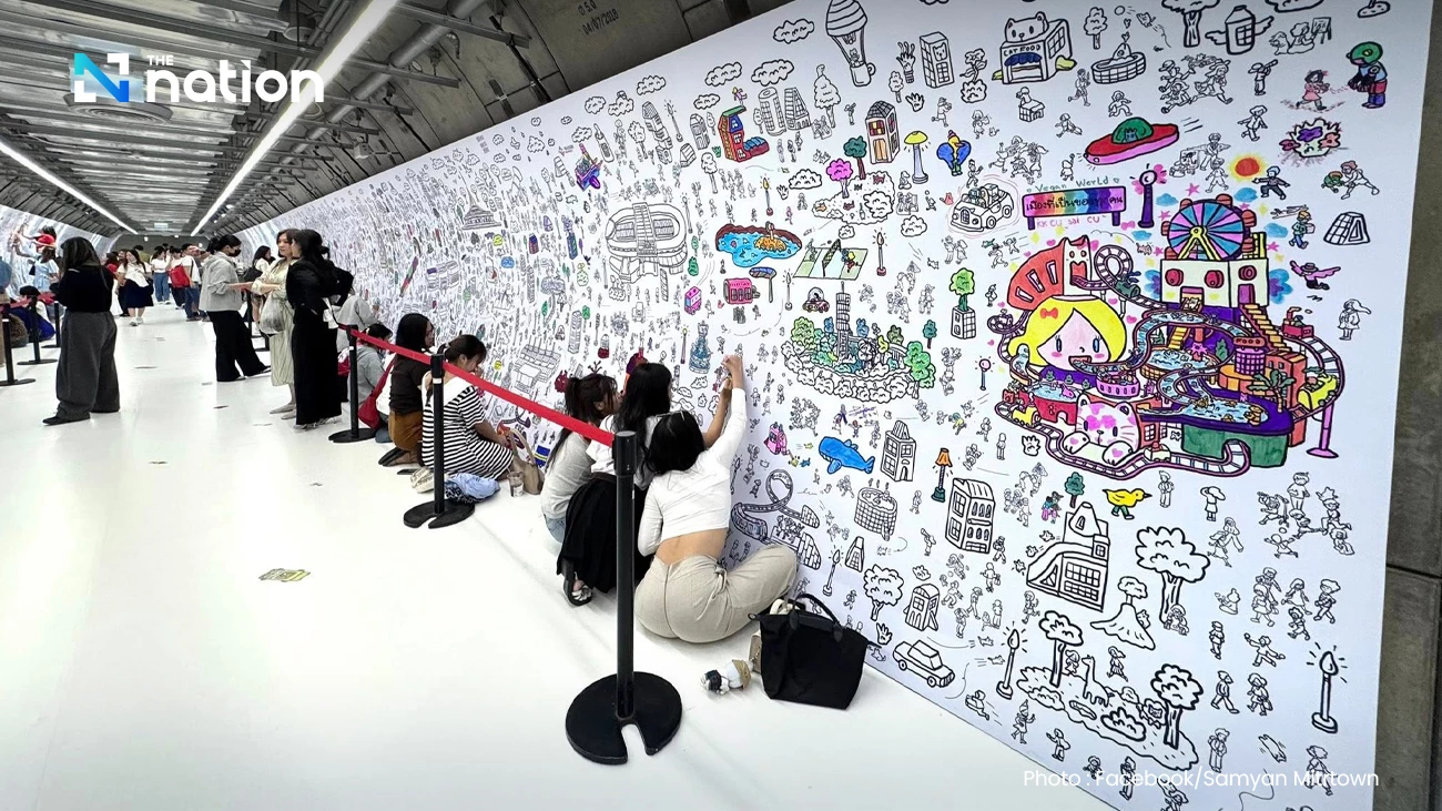 The Chuam Mitr Tunnel at Samyan Mitrtown has been transformed into a giant doodle art mural that narrates the story of Bangkok.