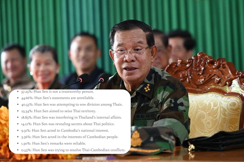 Over 40 per cent of respondents believed Hun Sen is sowing division in Thailand, but only about 25 per cent thought he wanted Thai territory, according to a July 6 report by The Nation Thailand.