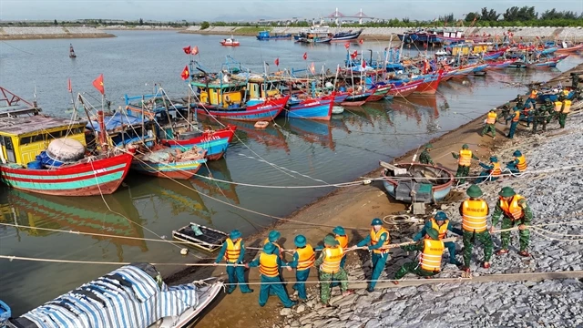 Ha Tinh, Hue and Quang Ngai Border Guards on Saturday asked 115 officers and soldiers to instruct and arrange 274 ships at anchorage areas, reinforce nine rafts and help locals brace 13 houses.