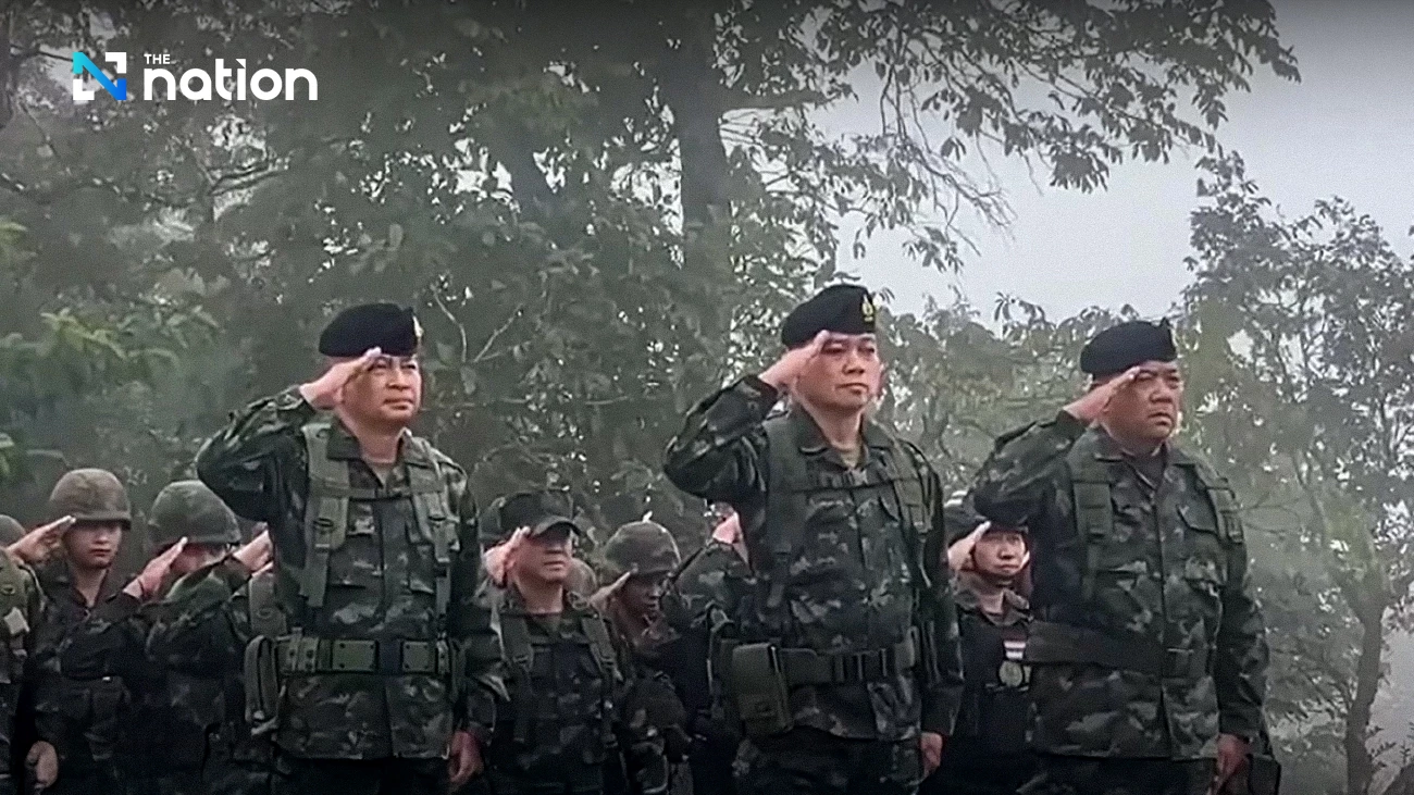 In a symbolic show of resolve, the Second Army Area released a video of its commander, Lt Gen Boonsin Padklang, leading troops to raise the national flag atop Phu Makua in Thailand and singing the national anthem alongside soldiers.