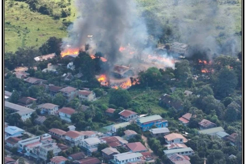 However, exile media outlets reported conflicting accounts, saying the fires may have been caused by artillery shells fired by the military as its forces approached the town, or even by the military itself, not by the KIA and PDF as alleged.