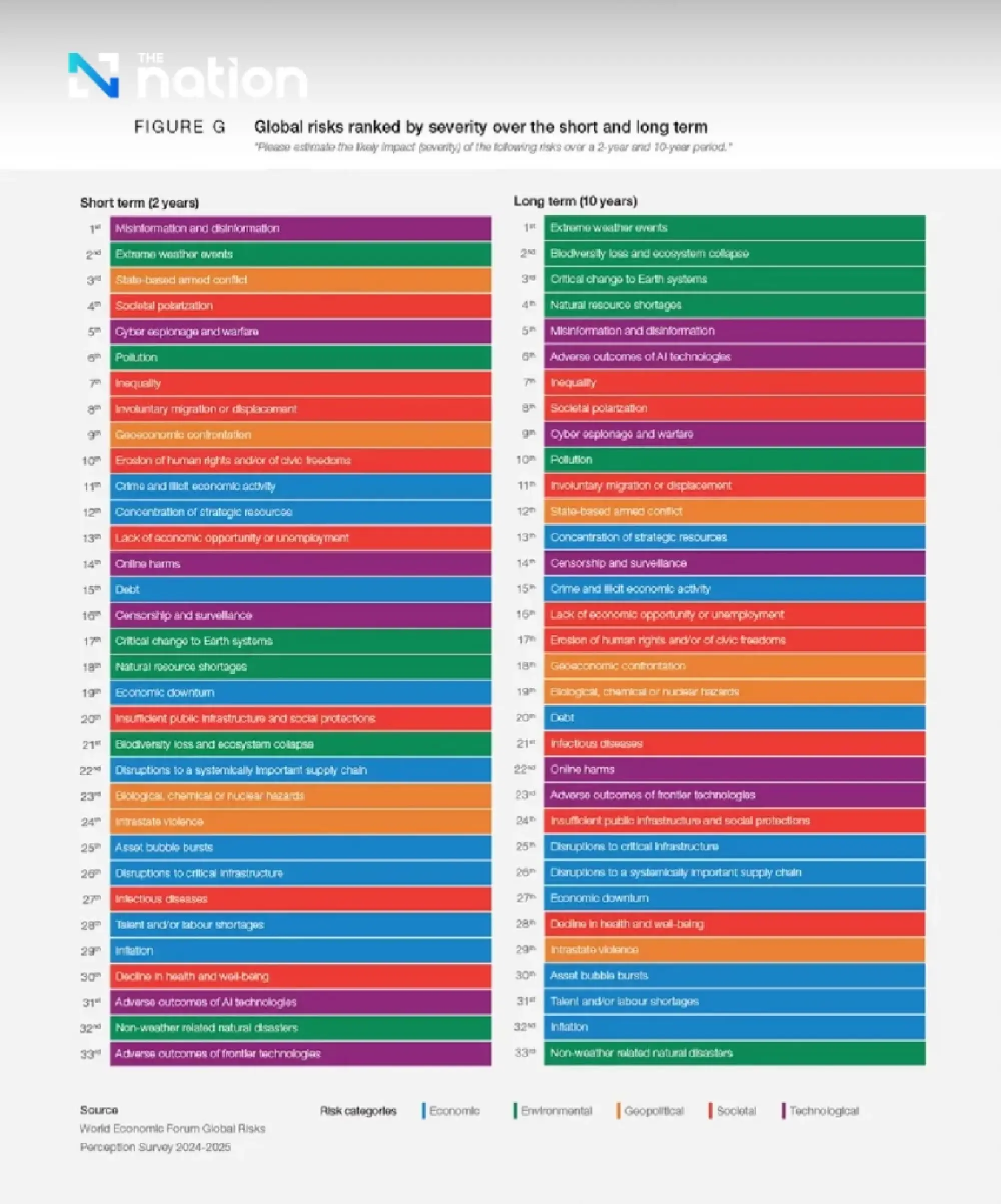 According to the Global Risks Report 2025—the 20th edition since its launch in 2006 by the World Economic Forum (WEF)—the Global Risks Perception Survey (GRPS) for 2024–2025 reflects a world that is becoming increasingly fragile.