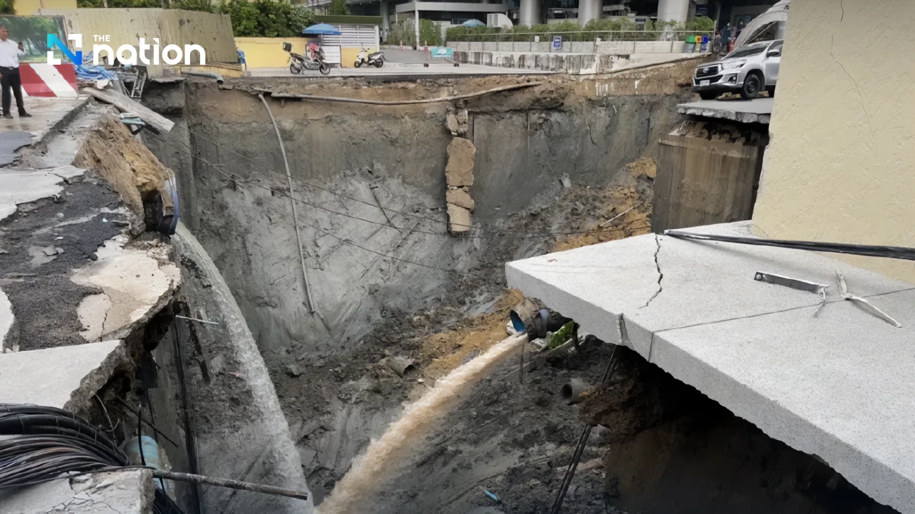 7.13am – A massive sinkhole, about 50 metres deep, appeared on Samsen Road in front of Vajira Hospital, Dusit district, and continued expanding towards the hospital and Samsen police station. No injuries were initially reported.