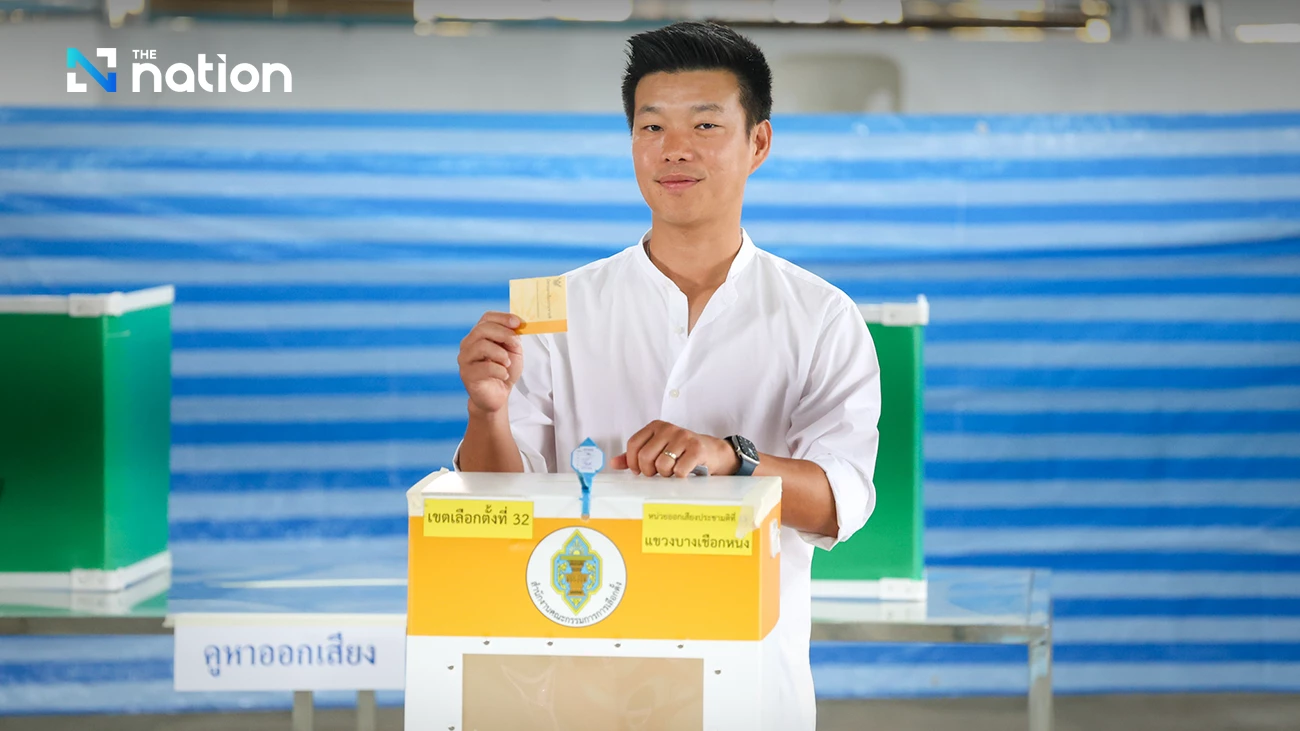 Natthaphong Ruengpanyawut, leader and prime ministerial candidate of the People’s Party, cast his ballot at a polling station at Wat Thong Bang Chueak Nang in Bangkok’s Taling Chan district at 9.48am on Sunday (February 8).