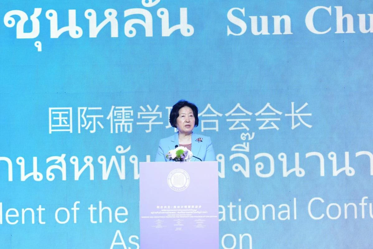 Phumtham said the wisdom of Confucius — that a gentleman seeks harmony but not uniformity — is closely related to the Thai people's tradition of advocating tolerance and mutual assistance. He said the world will progress through dialogue, and crises are resolved through cooperation.
