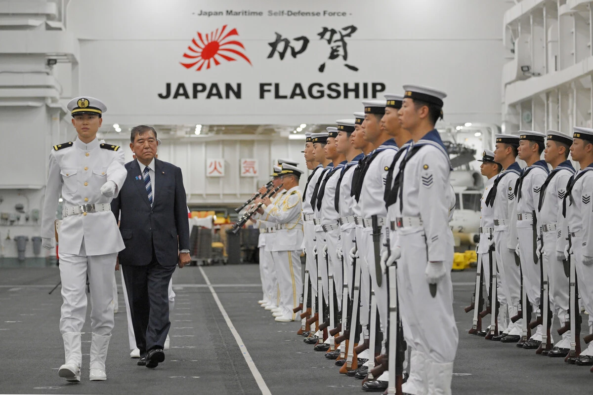 "To protect our country's independence and peace, we must further boldly advance efforts to strengthen deterrence," Ishiba said in a speech at a hangar of the Kaga, referring to the severe security environment surrounding Japan.