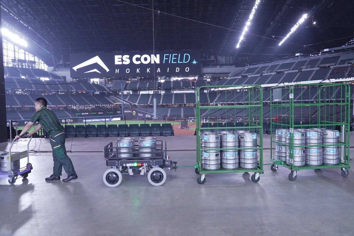 The Es Con Field Hokkaido stadium, home to the Hokkaido Nippon-Ham Fighters professional baseball team, has introduced a work assistance robot "Suppot" to transport beer kegs.