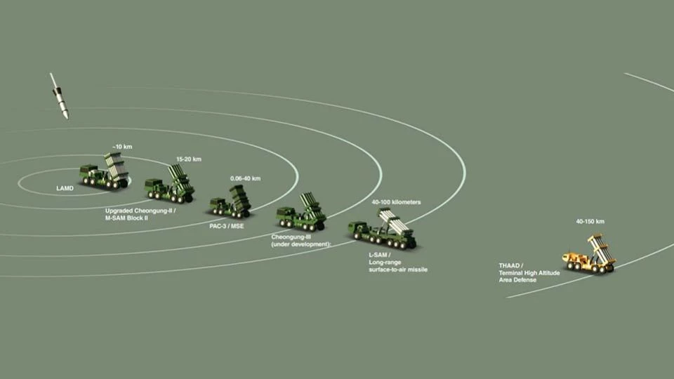 At the system’s mid-altitude tier, the country relies on an upgraded version of the Cheongung-II, also known as the M-SAM Block II. Its hit-to-kill interceptor, improved radar detection and ability to track multiple targets at once allow it to engage both aircraft and ballistic missiles at altitudes of roughly 15 to 20 kilometres.