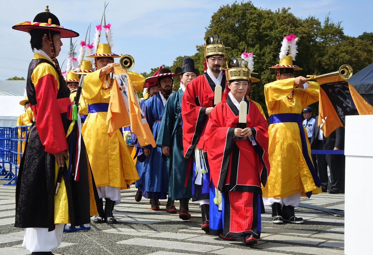 The reproduction of the procession of a Korean diplomatic delegation to Japan in the 17th to 19th centuries was performed at the event.