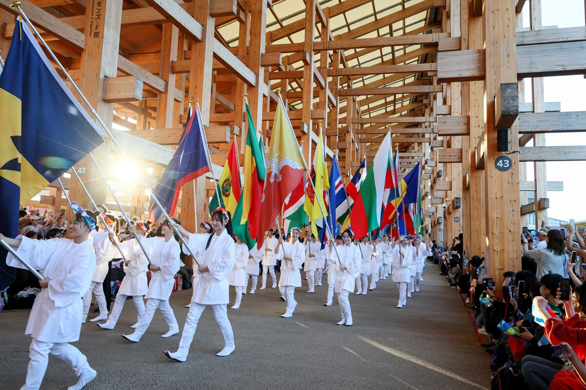 Later on Monday, a flag parade was held at the Expo venue, with attendees holding the national flags of participating countries, and fireworks were set off.