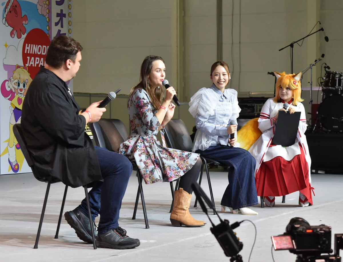 Popular Japanese voice actress Aya Hirano appeared at a stage event of the festival. A 15-year-old girl who came to the event to welcome Hirano, as she loves the works in which Hirano is involved, said that she wants to show Hirano around Moscow herself if the voice actress has time.
