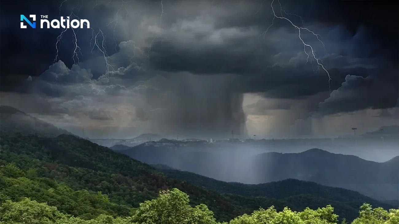 Cloudbursts occur when warm, moisture-laden air is forced upwards, often by mountains or hilly terrain. As the air cools and condenses, dense storm clouds form and become trapped by topographical barriers, preventing the moisture from dispersing. Strong updrafts keep the moisture suspended until the clouds can no longer hold it, releasing an explosive burst of rain in a short period.