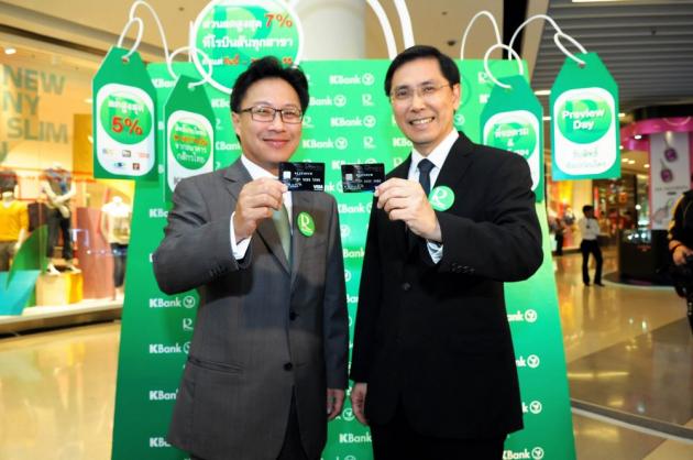 KBank Senior Executive Vice President Krisada Lamsam said that the Visa and Visa Platinum cards offer a 5 per cent discount at Robinson Department Store and at shops of the Central Retail Group including B2S, Supersports, HomeWorks, Office Depot, and Power Buy. Spending now until May 31 is entitled to 7 per cent discount.