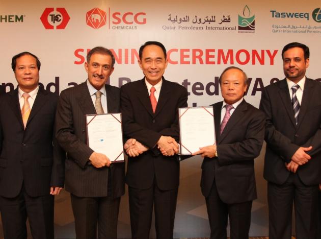 The joint venture agreement was signed on Thursday in Bangkok by SCG, QPI, PetroVietnam (PVN) and Vinachem. In Thai baht, the project is worth about Bt140 billion.