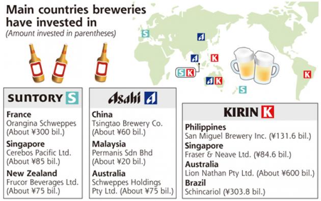 To cope, Japanese beverage companies shifted their strategies to boost involvement in overseas companies in which they had already invested.