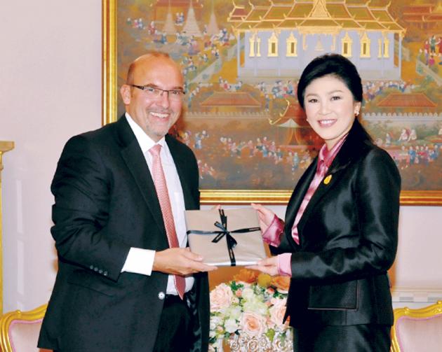 Yingluck met with Volkswagen AG chief executive officer Christian Klingler and discussed problems and obstacles associated with manufacturing eco-cars in Thailand.