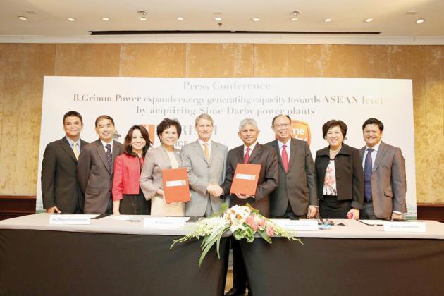 The B Grimm executives were speaking at a ceremony held to announce its acquisition of two small co-generation power plants, with a combined generating capacity of 163MW, in Laem Chabang Industrial Estate from Sime Darby Group yesterday, as the Malaysian conglomerate completed its exit from the power business.