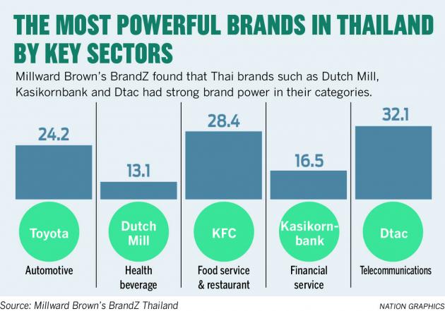 The company conducted its "BrandZ Thailand" research by interviewing 2,400 consumers aged 18-60 and asking them about their perceptions across key brands in six categories: financial, automotive, telecommunications, female beauty/skincare, health beverages, and food-service restaurants,