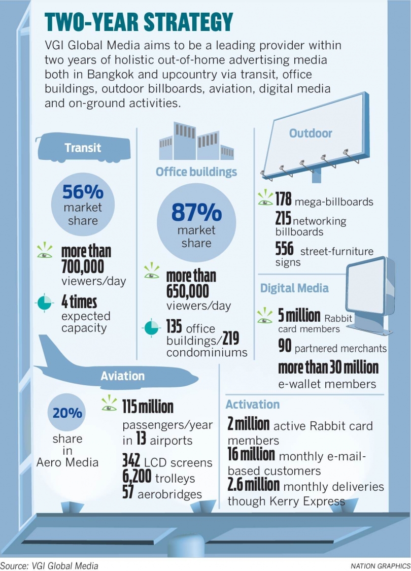 Kavin said that besides the outdoor-media business, VGI was also focusing on other out-of-home formats such as airports, digital media and on-ground activities.