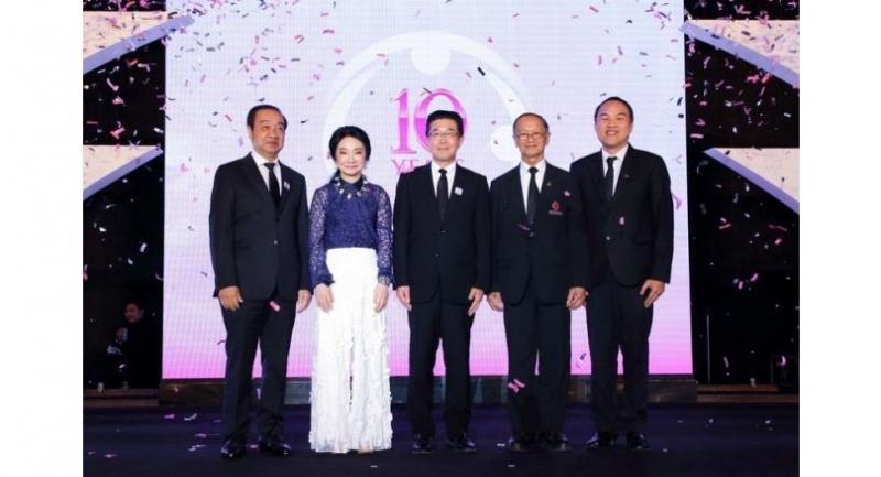 Celebrating the 10th anniversary of the Aeon Thailand Foundation recently at the Grand Hyatt Erawan Bangkok, chairman Kiyoyasu Asanuma, centre, and vice chairman and treasurer Suporn Wattanavekin, second left, welcomed Lt Gen Amnat Barlee, second right, director of the Thai Red Cross Society’s Relief and Community Health Bureau and other supportive partners. The foundation and its partners have launched more than 120 Corporate Social Responsibility initiatives to help develop a sustainable society, covering environmental conservation, education and social development.