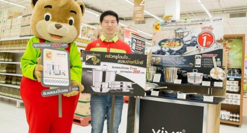 Through the stamp collection campaign. Big C is offering luxury German kitchen equipment, such as Vivo made of stainless steel; ‘Teflon’ latex coating suitable for healthy cooking, using less oil available in nine models of pots and plates of various sizes including cookware for Bt19,500 which customers can redeem starting at only Bt1.