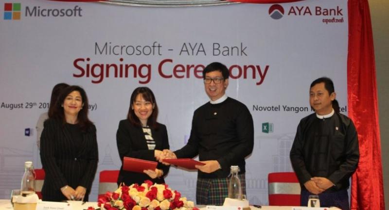 Myint Zaw, managing director of AYA Bank, said at a press conference that the Microsoft Office 365 software package will help the bank achieve its ambitious goals.