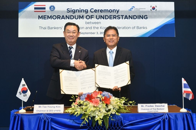 Photo shows Predee Daochai, right, chairman of the TBA and Tae-Young Kim, left, chairman and CEO of KFB.