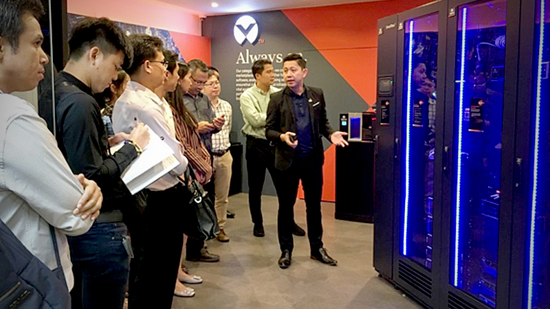 The main feature of the customer experience centre in Bangkok is the Vertiv SmartRow Plus micro data centre solution. This fully integrated, row-based solution combines power, thermal management, monitoring and infrastructure management, as well as security features in a compact design that can be easily expanded as compute demands increase.