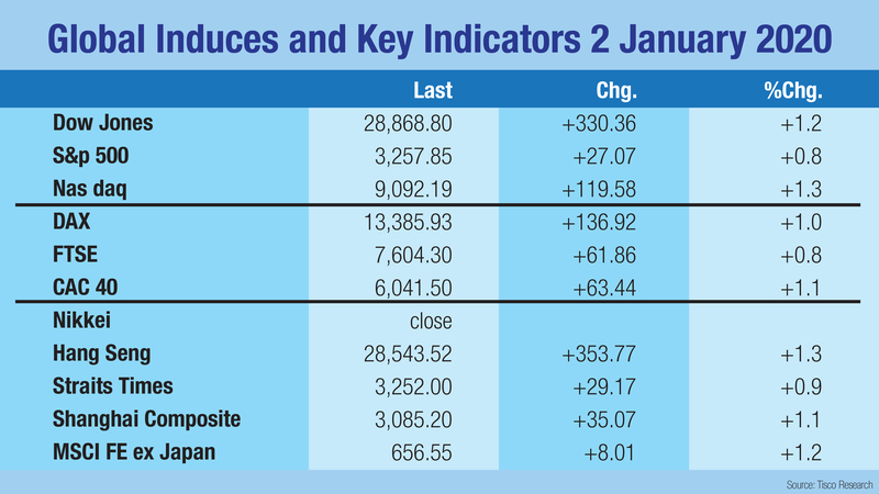 The SET surge was generally attributed to the more than 1 per cent jump in US equities with the Dow Jones and Nasdaq closing at record highs yesterday (January 2) on their first trading day of 2020.