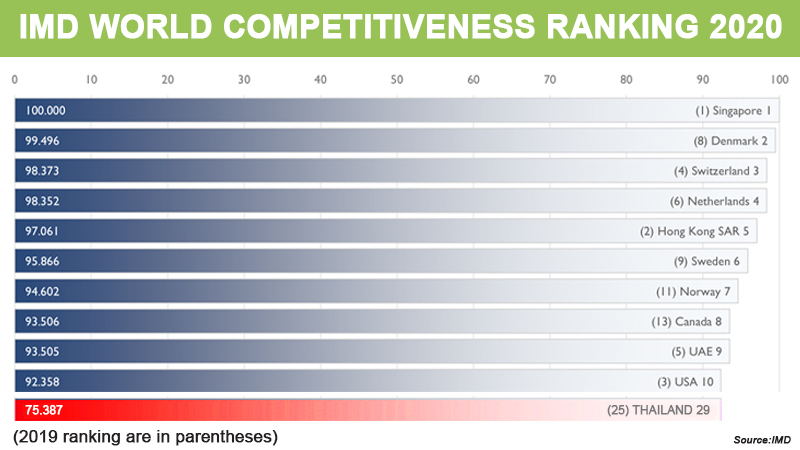 “Thailand’s overall of competitiveness scores, however, remain low as it has many challenges to overcome such as education, public health, environment as well as science and technology infrastructure,” Teeranun said.