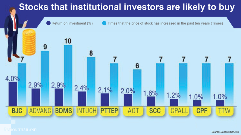 He recommended ten stocks institutional investors would buy – Berli Jucker (BJC), Advanced Info Service (Advanc), Bangkok Dusit Medical Services (BDMS), Intouch Holdings (Intuch), PTT Exploration and Production (PTTEP), Airports of Thailand (AOT), Siam Cement (SCC), CP All (CPAll), Charoen Pokphand Foods (CPF), and TTW.