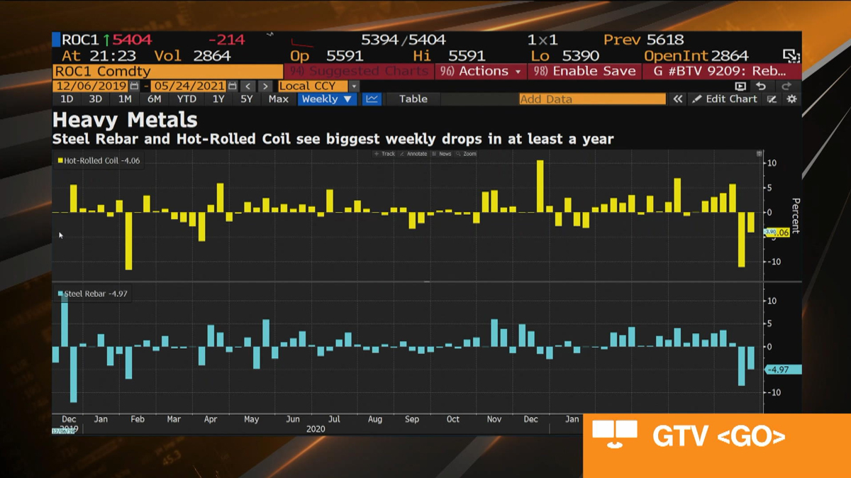The push to rein in surging metals prices rippled across markets -- with steel dropping as much as 6% and iron ore tumbling by close to the daily limit -- before prices steadied later in the session. Most base metals were also under pressure.