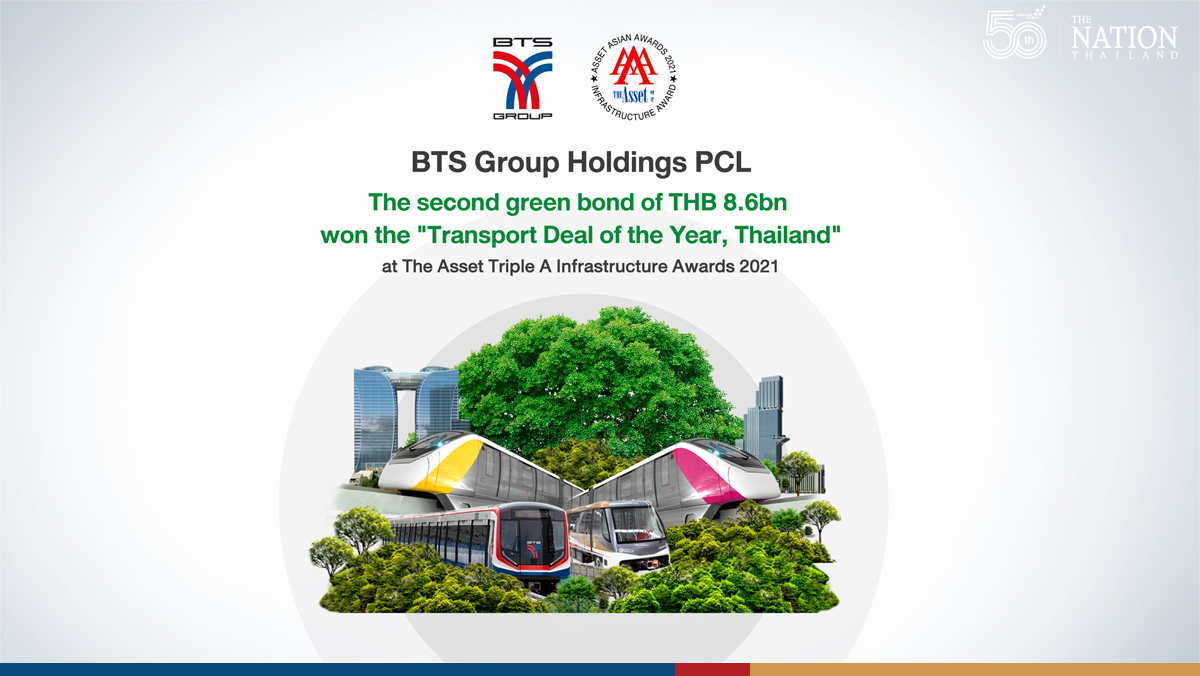 BTS Group Holdings Public Company Limited (“The Company” or “BTSG”) successfully issued senior unsecured Bonds to institutional and high-net-worth investors with 2.1 times oversubscription, in which the Company decided to exercise greenshoe option, bringing total Bonds issued to THB 13,000 million. The Bonds were rated ‘A’ by TRIS Rating and will be used for debt refinancing. In addition to this, BTSG recently won the “Transport Deal of The Year” Award, a regional award from The Asset Triple A Infrastructure Awards 2021 by The Asset, the leading financial magazine in Asia, for THB 8,600 million Green Bond Issuance in November 2020, emphasising BTSG’s commitment in sustainable business practice.