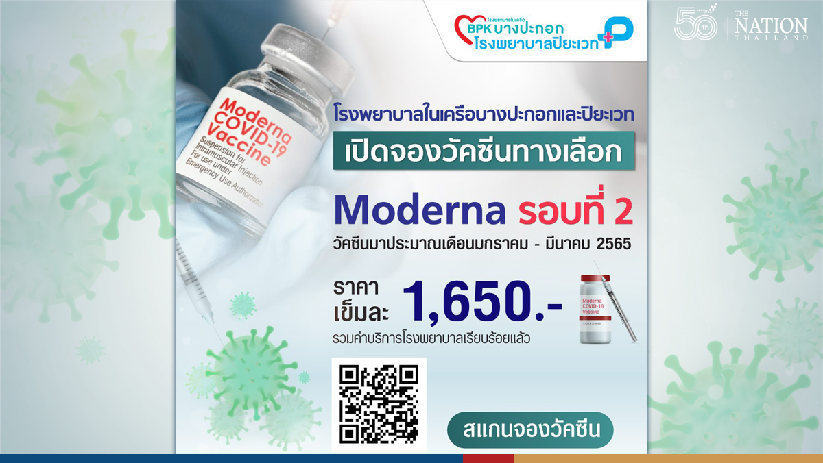 The Moderna doses are expected to be delivered between January - March 2022 and will be priced at 1,650 baht per jab, inclusive of hospital service fees.