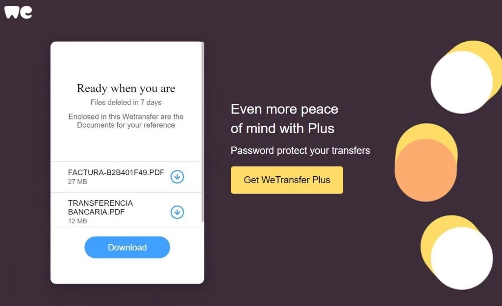 Stage 3: By clicking the link, the user is taken to a fake site generated by a well-known phishing kit. It is a fairly simple tool that generates phishing pages to steal credentials from specific resources. Our solutions blocked fake WeTransfer and Dropbox pages created with this kit.
