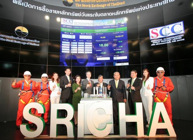 Sricha, which provides engineering services in and out of Thailand, ended the first trading day at Bt16.80, 12 per cent above its initial public offering price of Bt15.