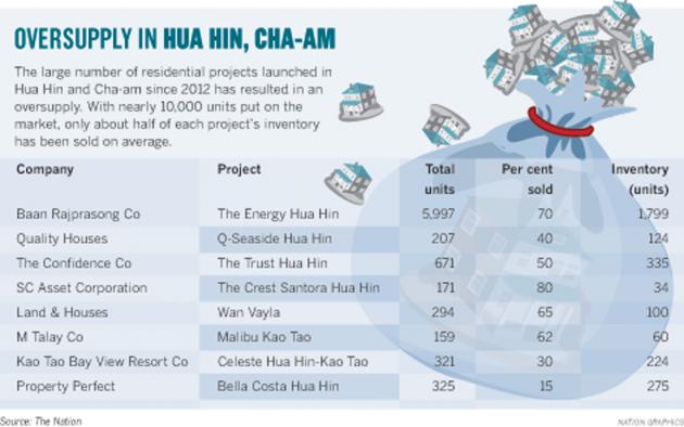 Residential projects in Hua Hin and Cha-am have been stuck with huge stocks of unsold units after demand dropped, according to a survey by The Nation.