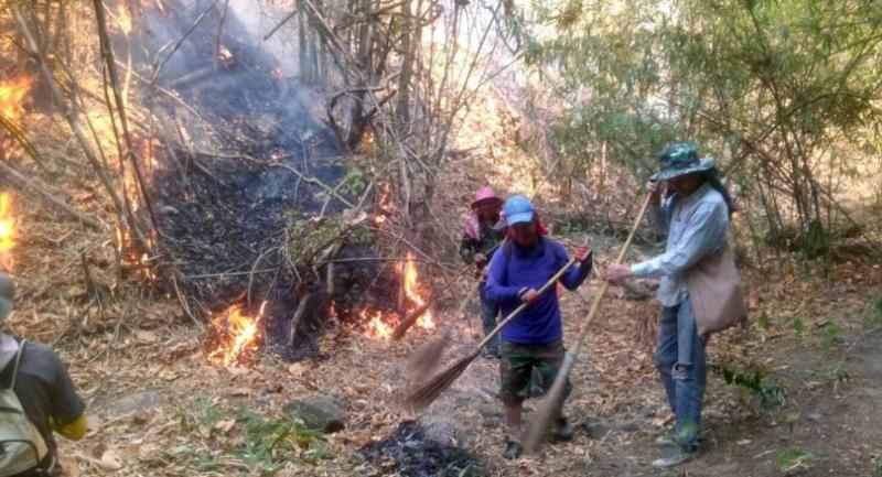 Area officials, vowing to strictly enforce a ban on entering forest reserves, warned people not to light campfires in woods because so many had already run out of control, destroying hundreds of rai of trees and killing wildlife.