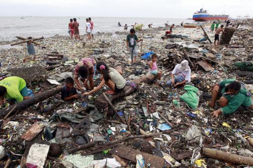 In Manila, teams from the public works department began to clear roads of debris and fallen trees. Cars submerged in Tuesday's floods were towed away.