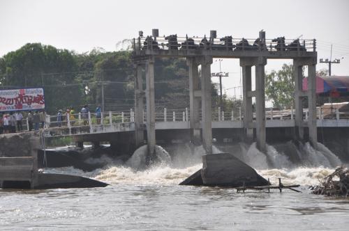 RID brought machinery and workers to repair the gate in Sing Buri and expected work to be complete tomorrow. The department insisted that water flowing through the breached gate would not raise the level of flood water in Tha Wung district of Lop Buri, which has receded to around 80 centimetres.