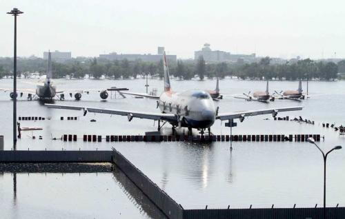 A mission was underway to partially reopen the airport by using 'Big Bags' to build a floodwater barrier at the runway and taxiway on the east side of the airport.