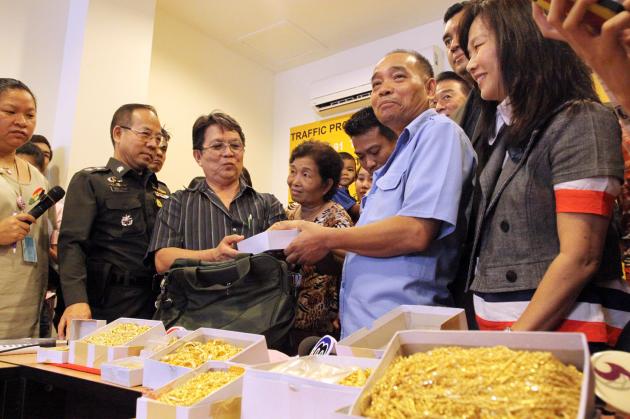 As a reward for his honesty, taxi driver Saksee Kesseekaew was immediately given gold necklaces worth about Bt200,000 by the grateful gold shop owner, Akekarat Kanokwannakorn, who also promised the cabbie an additional reward of Bt300,000 in cash.