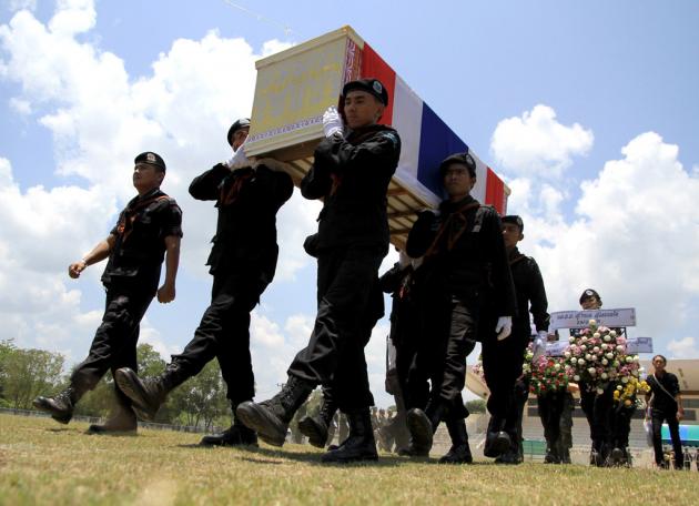 A villager wounded in a bomb attack in Narathiwat near a railway bridge on Wednesday died yesterday at a hospital, while the mother of Somchai Thajun, a ranger who was killed in the blast, was given money from the Army during a full military funeral held at a temple in Muang district.