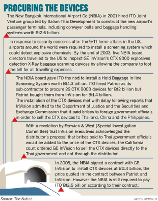 US authorities reported at the time that Thai officials or politicians might have received more than US$10 million (now about Bt310 million) in bribes after purchasing the bomb-detectors for the new airport.