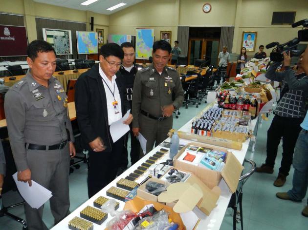They included 56 boxes containing 187kg of kratom leaves; 17 boxes of 175 cough-syrup bottles, 22 litres of leavening agent and 2,700 tablets of psychotropic substance category 4; two boxes containing 500 bullets; and one box of suspected bomb-making electronic parts, six communication radios, 13 cell phones, five barrels and 350 grams of potassium nitrate. It was suspected the materials were linked to the southern insurgency.
