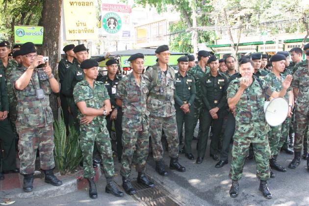 First Army Division commander Lt Gen Paiboon Koomchaya, said men from his division has asked for permission before protesting in front of the paper and he gave them permission but told them not to break the law and to respect others’ fundamental rights by not threatening them.