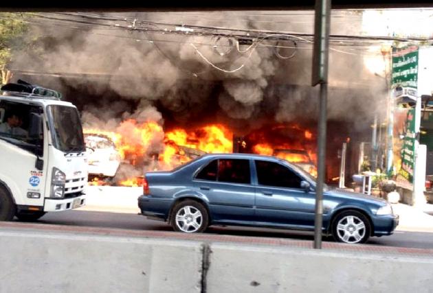 However, the owner then opened the hood and did something that apparently caused the fuel leakage, which was followed by explosions and flames that left the car owner and three mechanics burned. Saranrat said she wasn’t sure if the man was smoking while checking under the hood, because such a blast could have been caused by petrol fumes being ignited by a spark, adding that the man fled in a taxi. She urged police to locate him to take responsibility for the incident.