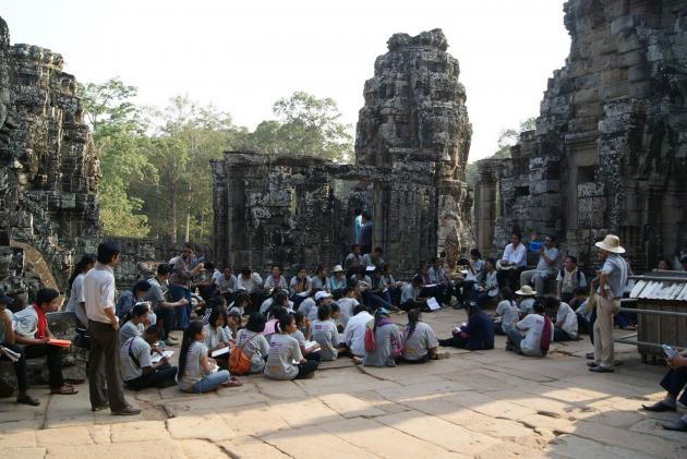 The Cambodian students are under the supervision of Im Sokrithy, chief of Cambodia’s Department of Communication and co-director of the Living Angkor Road Project.